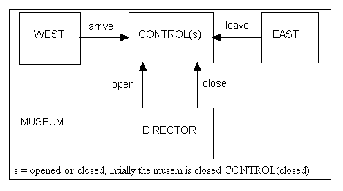 controller. The diagram below models the museum as processes communicating