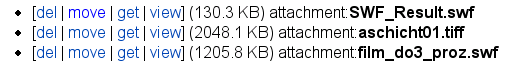 • <<AttachList(pagename)>> lists the attachments of the page with the given pagename.