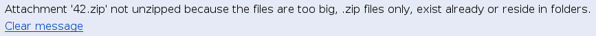 • This behaviour is controlled by the variable: unzip_attachments_space