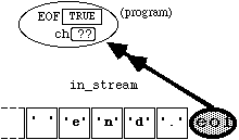 will leave the variable "ch" in an unpredictable state, and set the EOF flag to True. Once the EOF flag is set to True, no attempt should be made to read from the file, since the results will be unpredictable. To illustrate with a diagramatic example, if we start from