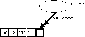 has two effects: (i) the variable "ch" is assigned the value "'5'", and (ii) the ifstream "in_stream" is re- positioned so as to be ready to input the next character in the file. Diagramatically, the new situation is: